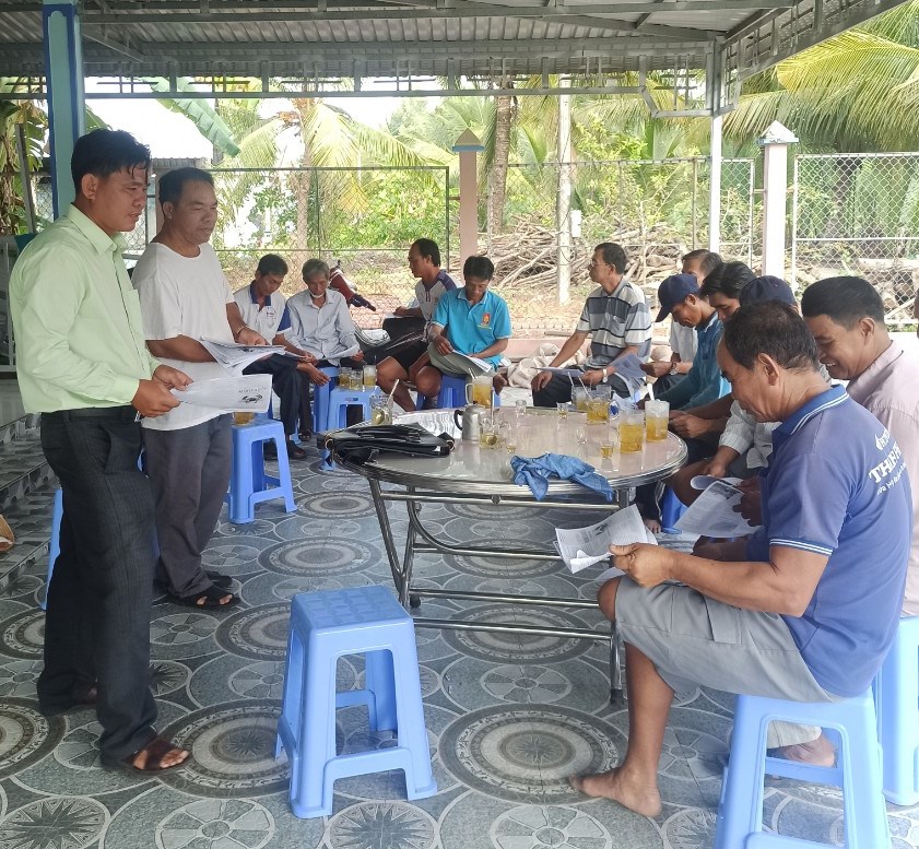Bên cạnh đó, trong quá trình nuôi các cán bộ tổ kinh tế thường xuyên bám sát đồng ruộng, kịp thời hỗ trợ, hướng dẫn nông dân quản lý chăm sóc tôm nuôi mùa nắng nóng , đặc biệt nhằm hạn chế một số bệnh truyền nhiễm nguy hiểm trên tôm nuôi có khả năng lây lan rộng như bệnh đốm trắng (WSD), đầu vàng (YHV) cán bộ kỹ thuật thường xuyên tuyên truyền người dân nuôi tôm quản lý cộng đồng, không xả nước ra kênh rạch khi tôm bị bệnh, báo ngay cho chính quyền địa phương, cán bộ chuyên môn để lấy mẫu xét nghiệm miễn phí nếu tôm bị bệnh truyền nhiễm thì nhà nước hỗ trợ hóa chất Clorine dập dịch theo quy định hạn chế dịch bệnh lây lan.