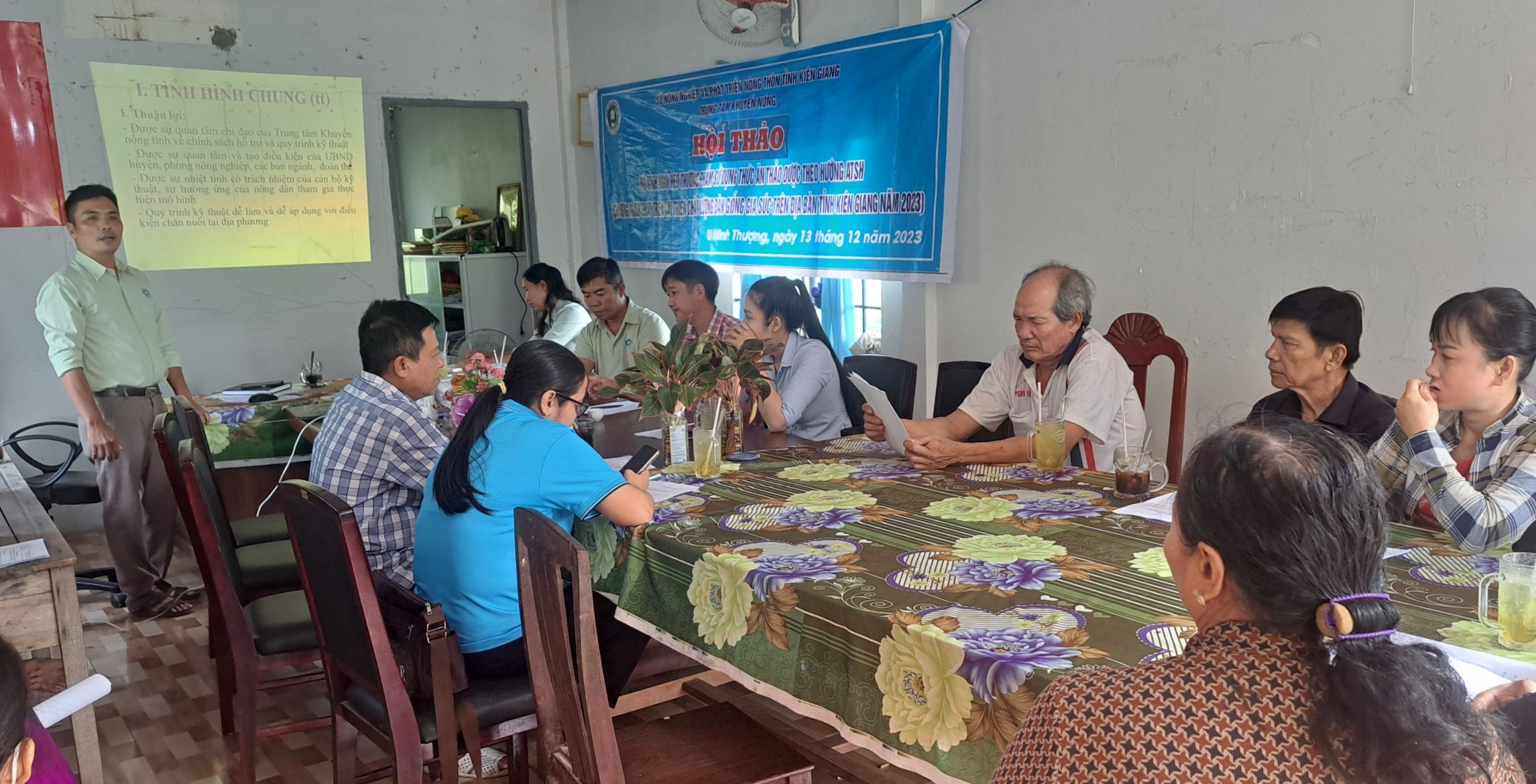 Thành phần buổi tập huấn có ông Trang Kiên Bush-Trưởng Trạm trồng trọt và BVTV huyện, chính quyền địa phương, tổ khuyến nông cộng đồng thị trấn, đại diện vùng trồng, nông hộ sản xuất cùng 30 nông dân tham dự.