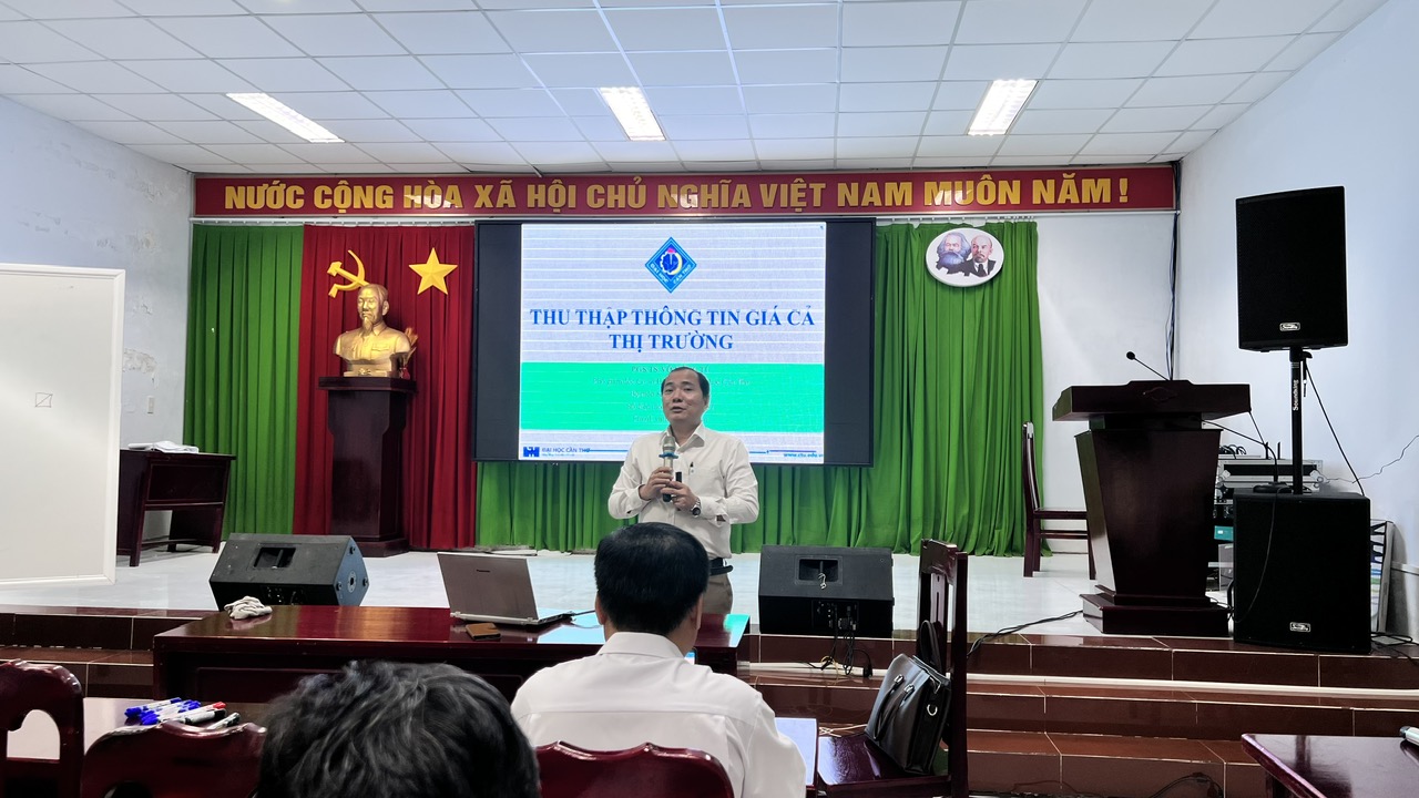 Trong thời lượng hai ngày học tập, các học viên được PGS TS Võ Hồng Tú – Phó Giám đốc cơ sở Hậu Giang, Đại học Cần Thơ và Ths Phạm Việt Truyền – GV Trường ĐHCT chia sẽ hệ thống kiến thức chuyên sâu, mang tính thực tiễn cao như: Giới thiệu tổng quan về giá nông sản, thị trường; Nguyên tắc hình thành giá và biến động giá; Phương pháp thu thập thông tin giá; Thực hành thu thập dữ liệu mẫu; Tổng hợp và phân tích dữ liệu giá cả nông, thủy sản, vật tư nông nghiệp.
