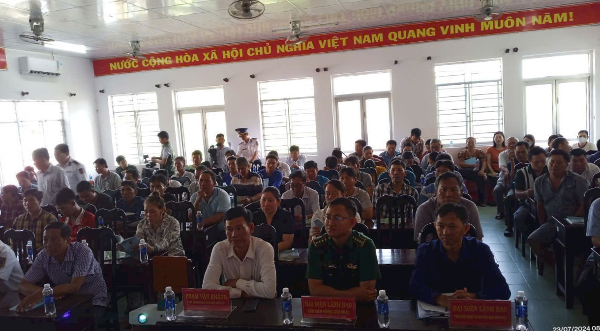 Quang cảnh buổi tuyên truyền chống khai thác IUU cho ngư dân xã Tân Thạnh, huyện An Minh
