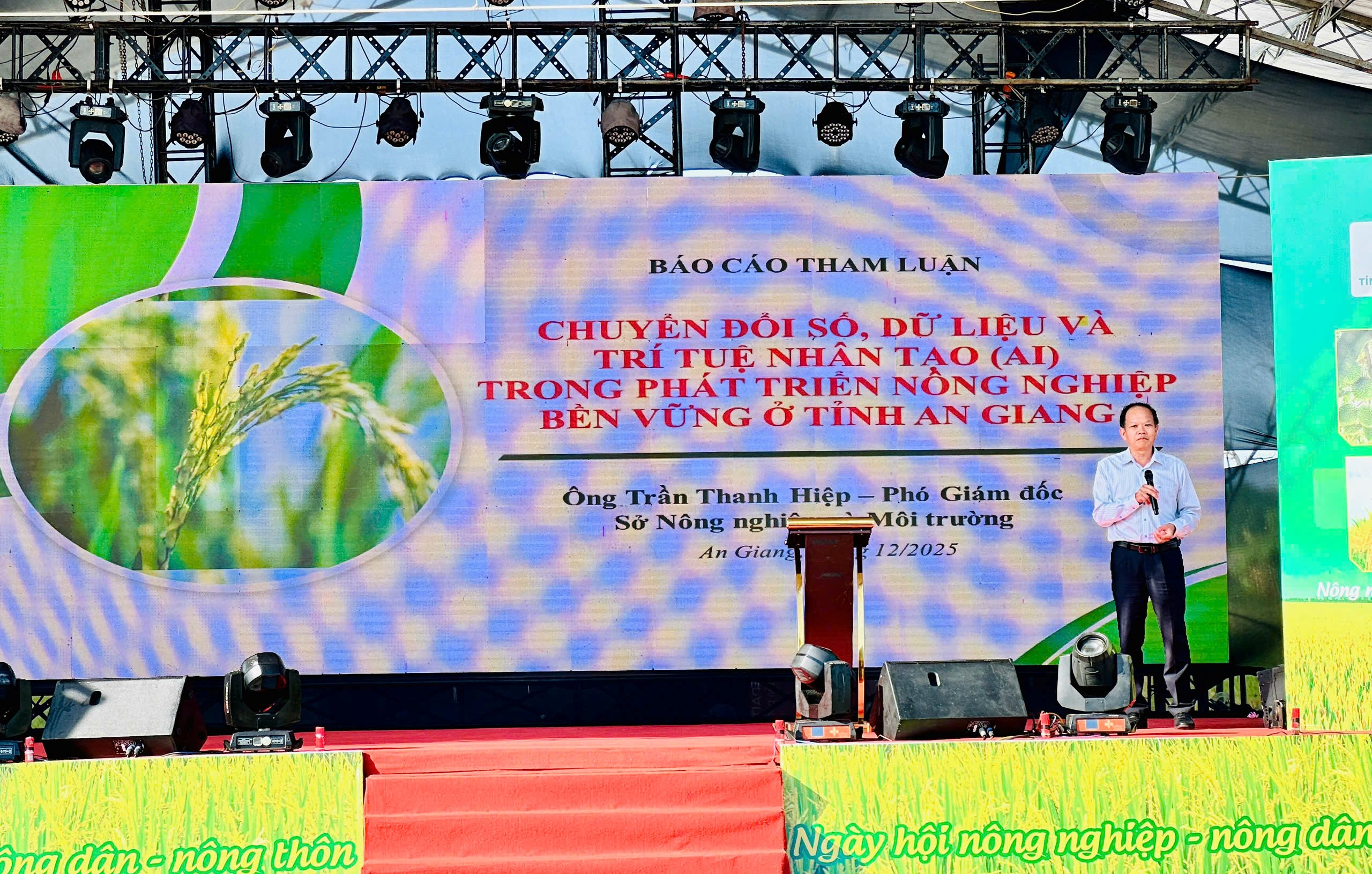 An Giang là tỉnh có thế mạnh về sản xuất lúa gạo, thủy sản và cây ăn trái, đóng vai trò quan trọng trong chuỗi cung ứng nông sản của cả vùng Đồng bằng sông Cửu Long và cả nước. Tuy nhiên, biến đổi khí hậu diễn biến ngày càng phức tạp, thị trường nông sản cạnh tranh gay gắt và yêu cầu phát triển bền vững ngày càng cao, nông nghiệp tỉnh An Giang đang đứng trước yêu cầu cấp thiết phải đổi mới. Do đó, Chuyển đổi số, dữ liệu và Trí tuệ nhân tạo (AI) chính là động lực then chốt, tạo nền tảng cho quá trình tái cơ cấu nông nghiệp.