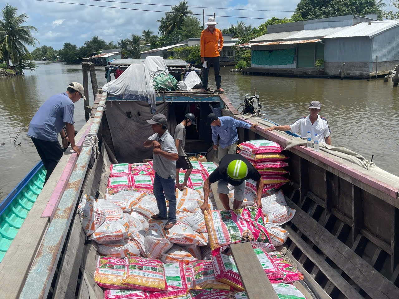 Cấp phát vật tư mô hình cải thiện mặn tại xã Tân Thạnh