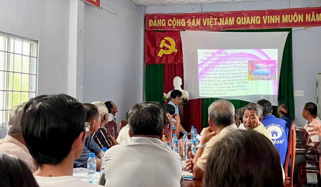 Tập huấn mô hình nuôi cá heo xanh thương phẩm sử dụng thức ăn công nghiệp