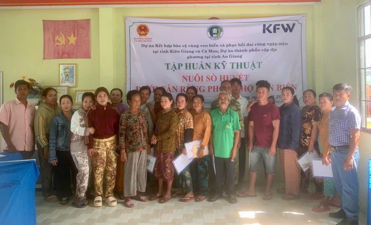 Tập huấn Kỹ thuật nuôi sò huyết và tôm sú kết hợp dưới tán rừng phòng hộ – bảo vệ cùng ven biển và phục hồi đai rừng ngập mặn