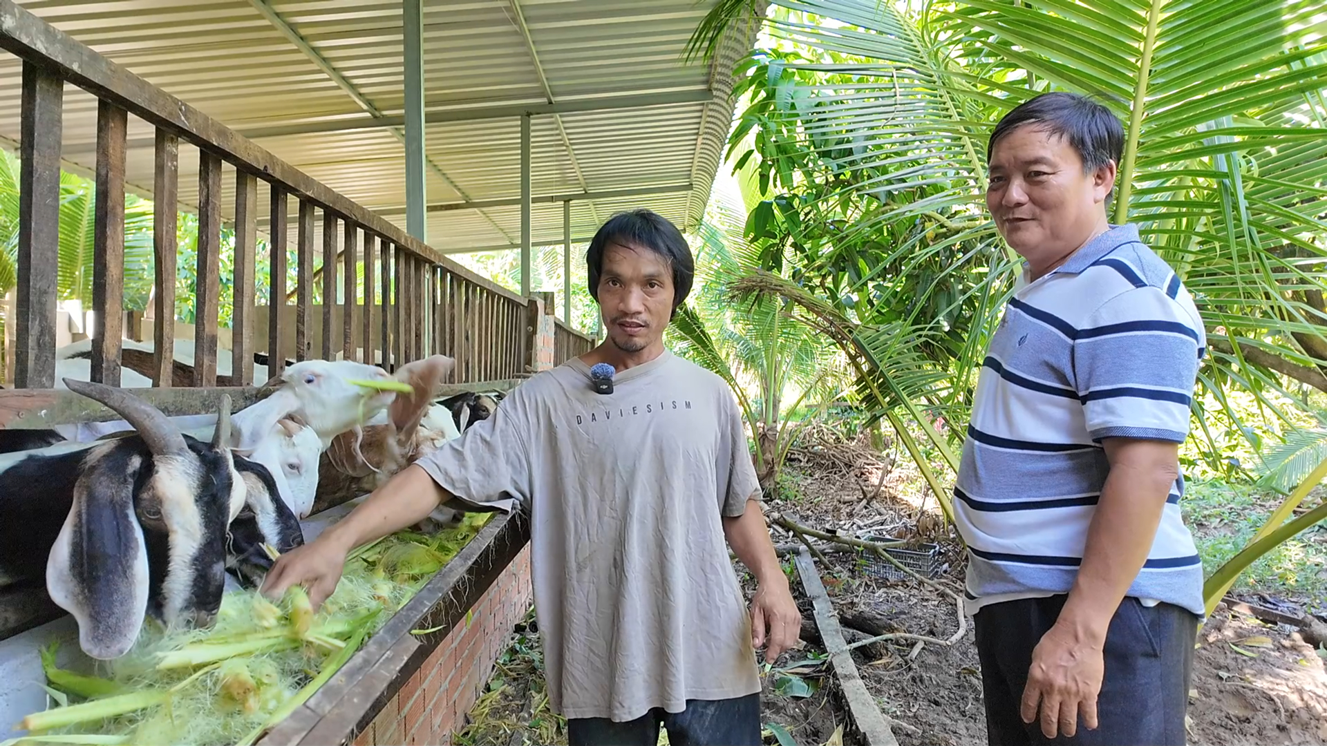 Không chỉ tập trung vào chăn nuôi, anh Tự còn trồng gần 150 cây dừa dứa và mấy trăm gốc xoài quanh vườn. Nhờ nguồn phân hữu cơ từ đàn vật nuôi, cây trái xanh tốt, ít khi phải dùng phân hóa học. Cây dừa, xoài vừa mang lại bóng mát, vừa tạo thêm thu nhập ổn định.