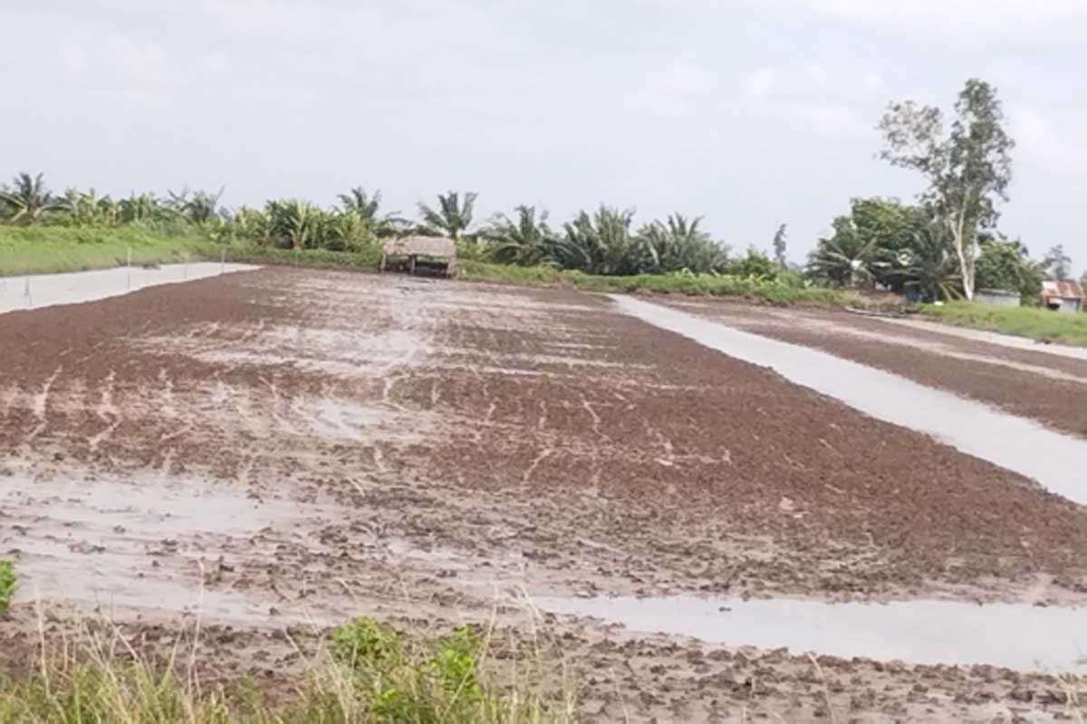 – Ngâm nước ngọt 2 – 3 ngày, sau đó xả bỏ, tiếp tục lấy nước ngọt vào  rửa, lập lại 2 – 3 lần giúp mặn trong đất được rửa mặn triệt để (có thể tranh thủ lúc mưa để lấy nước hoặc kiểm tra độ mặn trên kênh cấp nước nếu 0‰ thì tiến hành lấy nước vào để rửa mặn).