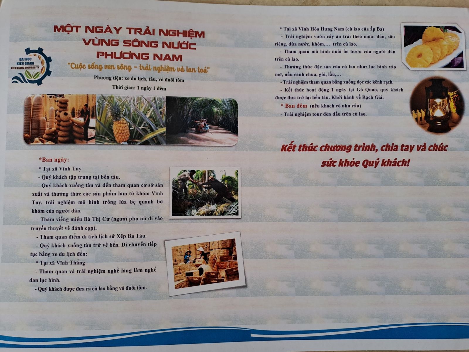 Nội dung 3: Thí điểm triển khai xây dựng mô hình du lịch sinh thái vườn ven sông Cái lớn, Cái Bé tỉnh Kiên Giang và tuyên truyền, phổ biến nhân rộng mô hình, đây là nội dung quan trọng và có 07 công việc chính gồm: (i) Lựa chọn địa điểm, hộ dân tham gia xây dựng mô hình du lịch sinh thái trên lưu vực sông Cái Lớn, Cái Bé; (ii) Tập huấn cho các hộ gia đình về điều kiện làm du lịch kiểu hộ gia đình; (iii) Thâm nhập từng hộ gia đình nhằm hướng dẫn các hộ dân chuẩn bị các điều kiện (cơ sở vật chất, cung cách phục vụ…) đón khách du lịch đến tham quan; (iv) Khởi công xây dựng các bến đò đón khách; (v) Triển khai công tác quảng quá thương hiệu du lịch sinh thái vườn ven sông Cái lớn, Cái Bé tỉnh Kiên Giang trên kênh Đài Phát thanh truyền hình tỉnh Kiên Giang và các trang công cụ của mạng xã hội (zalo, facebook, tiktok, youtube) để đông đảo du khách; (vi) Phối hợp các công ty lữ hành tổ chức các đoàn chuyên gia, du khách, các doanh nghiệp lữ hành, sinh viên ….ngành Du lịch, Việt Nam học, Văn hóa học, Quản trị nhà hàng, khách sạn… ở các Trường Đại học khu vực Đồng bằng Sông Cửu Long, TP Hồ Chí Minh về tham quan mô hình và (vii) Tổ chức 3 lớp tập huấn chuyển giao kết quả nghiên cứu ra dân để nhân rộng mô hình.