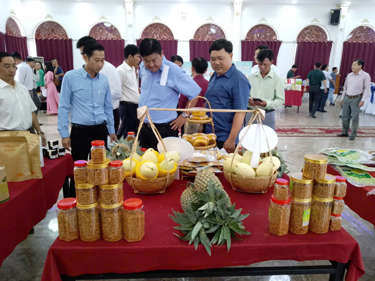 Các sản phẩm trưng bày đều là những sản phẩm OCOP đã được công nhận, sản phẩm đặc trưng, tiêu biểu của địa phương, phản ánh rõ nét tiềm năng, lợi thế và thành quả trong sản xuất nông nghiệp của tỉnh An Giang. Nổi bật như xoài keo An Phú, xoài sấy dẻo, các sản phẩm từ nấm, gạo đặc sản, tôm khô, hạt tiêu, trà tuyết mãng cầu, mắm cá linh, cá linh kho mía, thốt nốt đóng lon, rượu khóm… Mỗi sản phẩm đều được chuẩn bị thông tin giới thiệu cụ thể về nguồn gốc, quy trình sản xuất và giá trị kinh tế, giúp đại biểu dễ dàng tìm hiểu và tiếp cận.