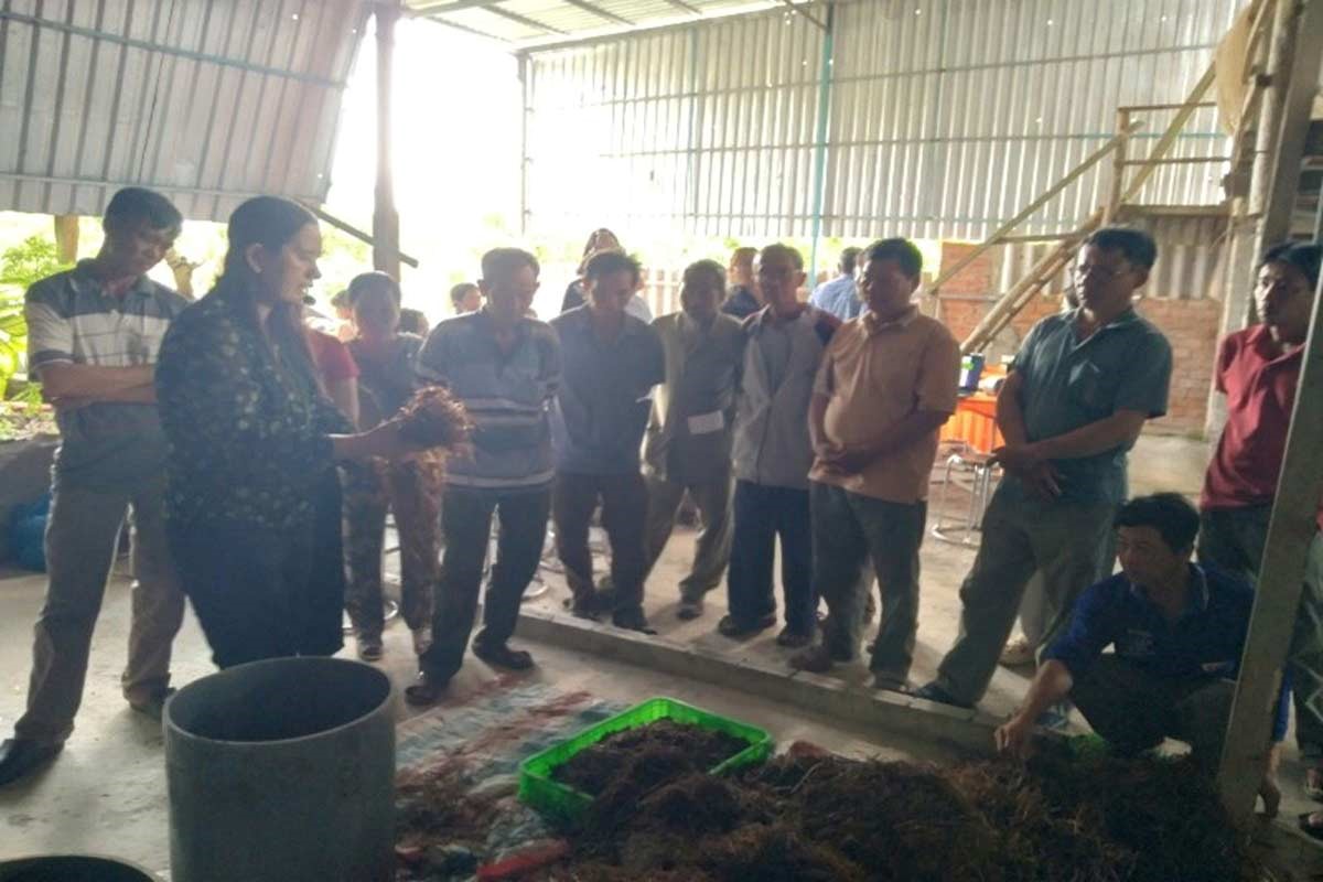 Để giảm bớt gánh nặng chi phí đầu tư ban đầu và khuyến khích người dân tham gia, Tổ chức Quốc tế về Bảo tồn Thiên nhiên (WWF) – đơn vị triển khai Dự án Mekong NbS đã hỗ trợ vật tư thiết yếu cho các hộ tham gia. Từ nguyên liệu rơm, meo giống, bông gòn, và cả hệ thống máy phun sương tạo ẩm những yếu tố then chốt để tạo nên một môi trường lý tưởng cho nấm phát triển. Bên cạnh đó, dự án còn mời các chuyên gia, cán bộ kỹ thuật đến tận các mô hình để tư vấn, hướng dẫn nông dân thực hiện một cách có khoa học và có hiệu quả.