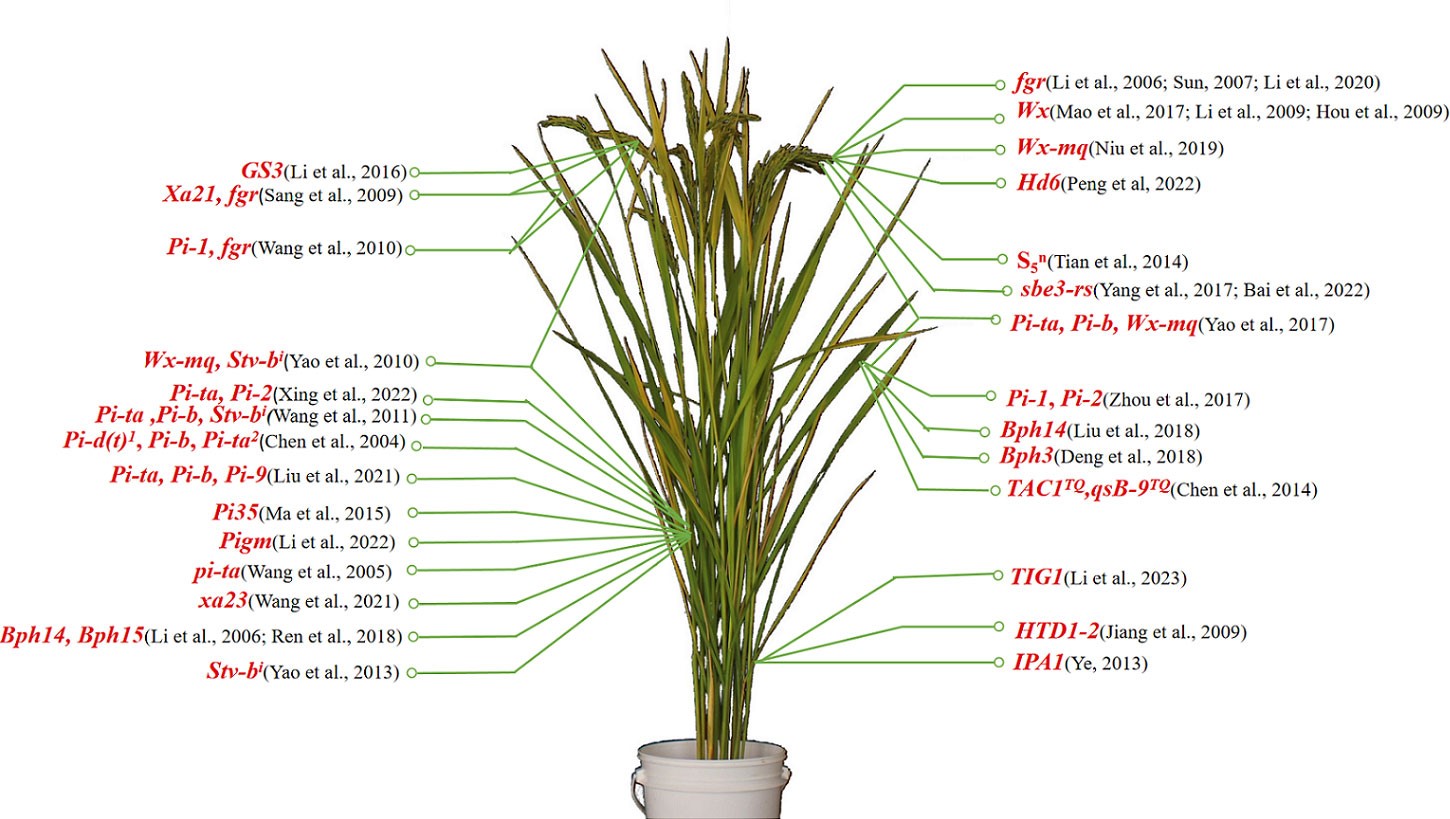 Bản đồ phân bố các dấu ấn phân tử gen chức năng được phát triển ở Trung Quốc. Công nghệ CRISPR/Cas9 chỉnh sửa gen và lai tạo giống đã sửa đổi chính xác các gen trong cây lúa để cải thiện các đặc tính của nó, chẳng hạn như tăng khả năng kháng bệnh, kháng stress và năng suất, giúp tạo ra các giống lúa ưu tú. Công nghệ chỉnh sửa bộ gen CRISPR/Cas9 đã được sử dụng rộng rãi để cải thiện khả năng sinh sản của lúa và nâng cao khả năng kháng bệnh, chất lượng và các đặc điểm nông học. Nó đã phát triển thành một hệ thống chỉnh sửa gen chủ đạo, rất quan trọng cho công tác lai tạo giống lúa trong tương lai. Trong những năm gần đây, nhiều nhà khoa học đã sử dụng công nghệ CRISPR/Cas9 để thực hiện chỉnh sửa bộ gen và thu được nhiều nguồn gen lúa chất lượng cao. nguồn Frontiers .