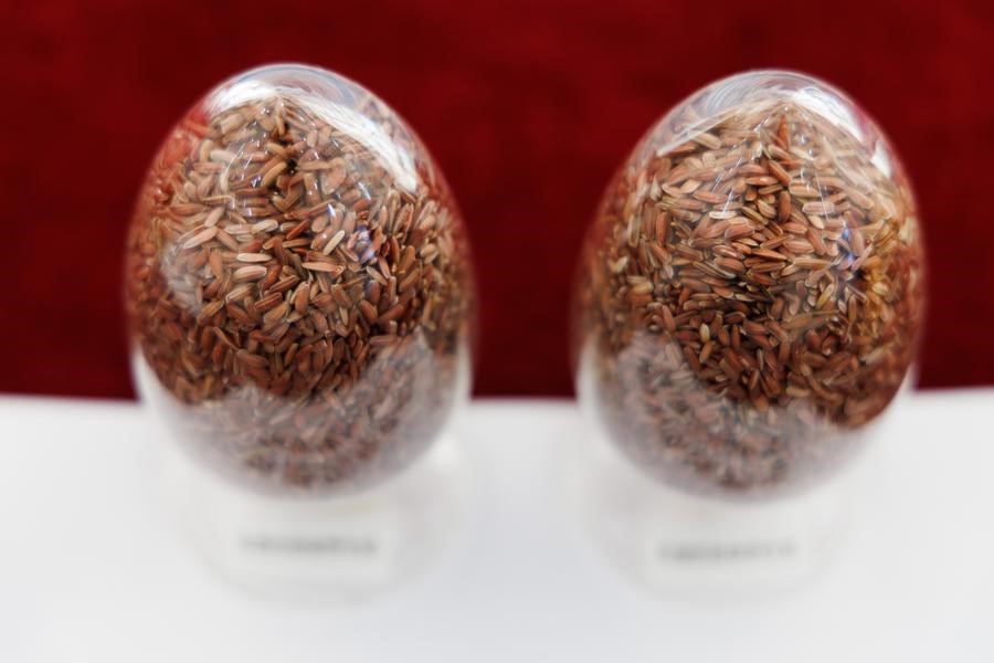 Một loài lúa hoang dã được thuần hóa nhanh chóng được chụp ảnh tại một cuộc họp báo của Viện Hàn lâm Khoa học Trung Quốc (CAS) ở Bắc Kinh, thủ đô của Trung Quốc, ngày 22 tháng 12 năm 2025. (Tân Hoa Xã/Jin Liwang)