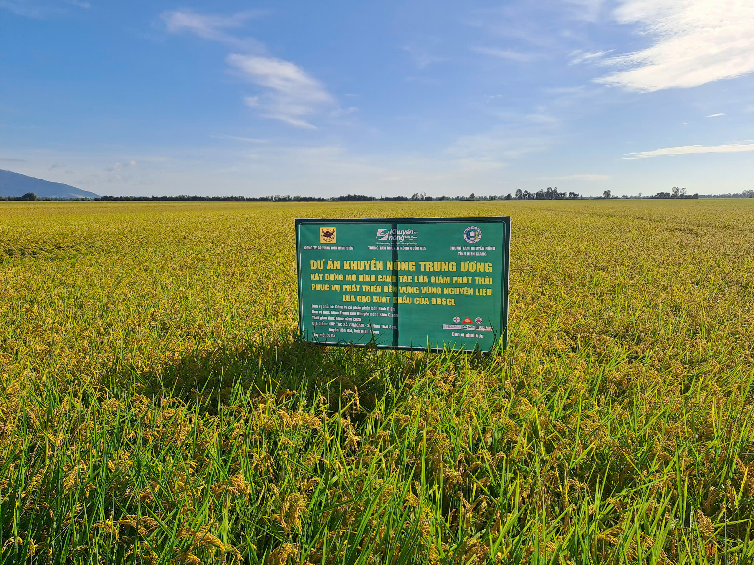 Dự án Khuyến nông TW “Xây dựng mô hình canh tác lúa giảm phát thải phục vụ phát triển bền vững vùng nguyên liệu lúa gạo xuất khẩu của Đồng bằng sông Cửu Long” triển khai tại An Giang từ vụ Đông Xuân 2024-2025 và Hè Thu 2025, đến nay kết quả thành công ngoài mong đợi, không chỉ mang lại lợi nhuận cho nông dân, mà hạt gạo làm ra đã đáp ứng tiêu chí của quy trình chứng nhận “Gạo Việt xanh, phát thải thấp” phù hợp với định hướng phát triển nông nghiệp bền vững của tỉnh An Giang.