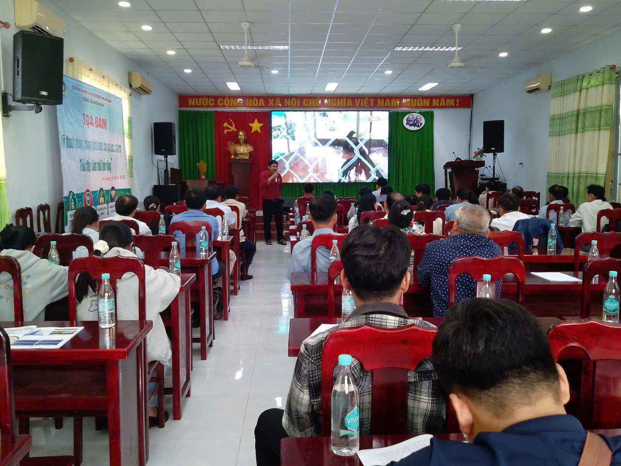 Buổi tọa đàm được tổ chức nhằm truyền tải các giải pháp kỹ thuật trong phòng, chống dịch bệnh cho gia súc, gia cầm, đồng thời góp phần thúc đẩy phát triển chăn nuôi theo hướng an toàn, hiệu quả và bền vững. Phát biểu khai mạc buổi tọa đàm, ông Nguyễn Phước Thành phó Giám đốc Trung tâm cho biết: trong những năm gần đây, tình hình dịch bệnh động vật trên cạn diễn biến phức tạp. Các loại dịch bệnh nguy hiểm như dịch tả heo châu Phi, cúm gia cầm, lở mồm long móng… không chỉ gây thiệt hại lớn về kinh tế mà còn ảnh hưởng đến an toàn thực phẩm, môi trường sinh thái và sức khỏe cộng đồng. Tọa đàm là cùng nhau chia sẻ kinh nghiệm, cập nhật kiến thức, trao đổi các giải pháp kỹ thuật trong phòng, chống dịch bệnh cho động vật trên cạn và thảo luận các định hướng, mô hình liên kết, giải pháp thúc đẩy chuỗi giá trị chăn nuôi bền vững, phù hợp với điều kiện thực tiễn của tỉnh An Giang.