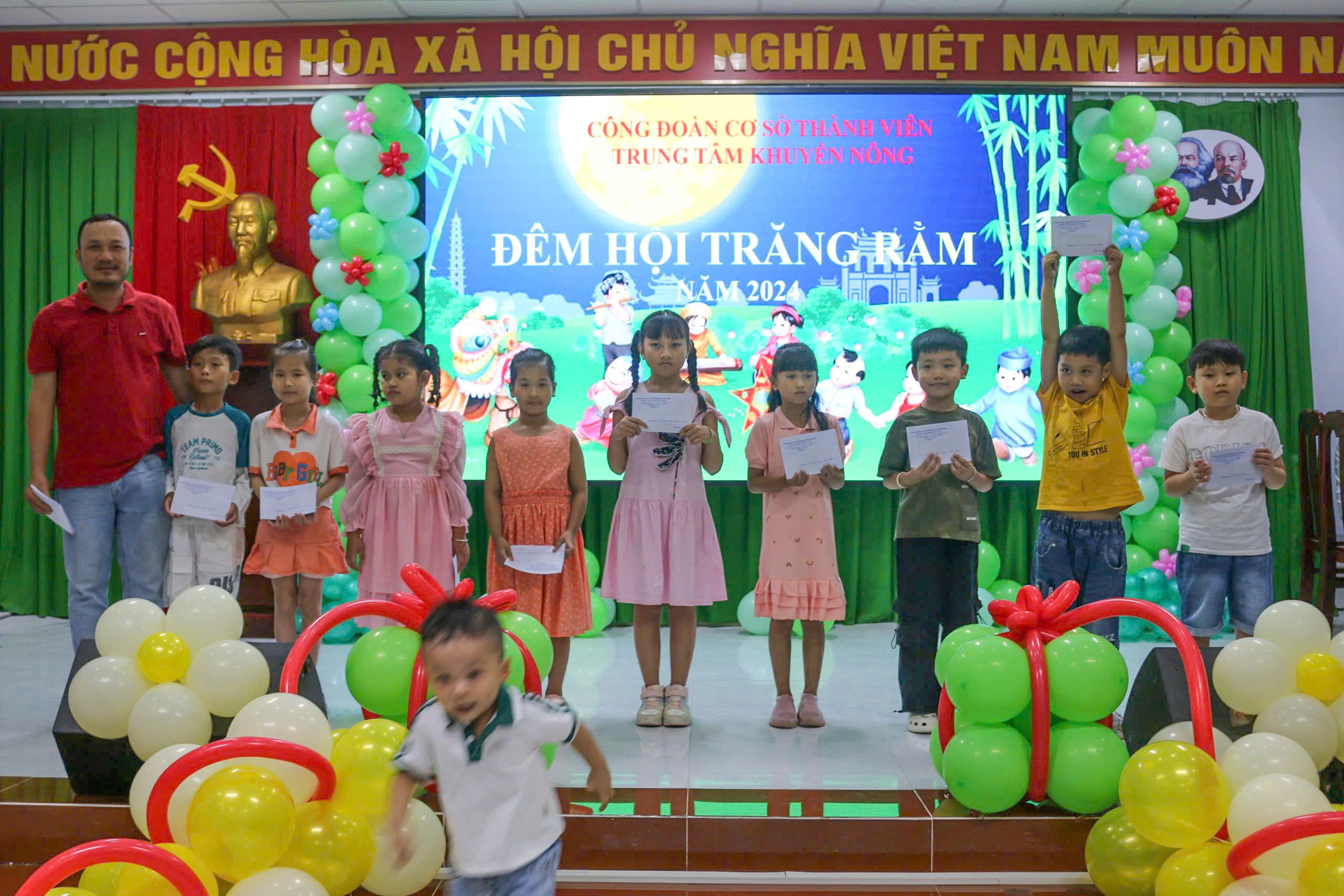 Chiều ngày 16/9/2024, tại hội trường Trung tâm Khuyến nông, ban chấp hành Công đoàn thành viên Trung tâm Khuyến nông phối hợp cùng Chi đoàn Trung tâm Khuyến nông tổ chức một sự kiện đặc biệt dành riêng cho các cháu thiếu nhi của các thành viên công đoàn viên, mang tên “Đêm Hội Trăng Rằm”. Buổi lễ đã trở thành dịp để tôn vinh sự chăm chỉ học tập của các em cùng những khoảnh khắc vui tươi với nhiều trò chơi hấp dẫn.