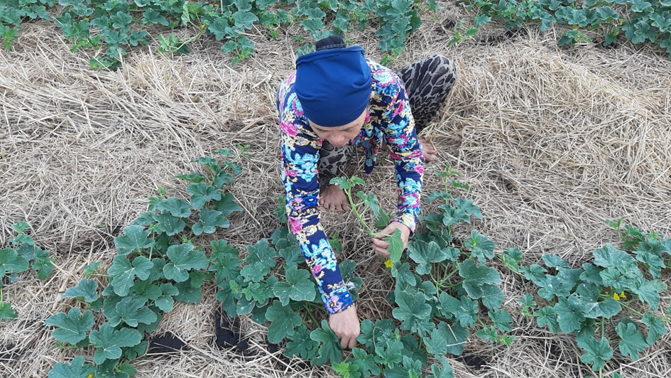 Nông dân xã Vĩnh Bình Bắc đang chăm sóc dưa lê
