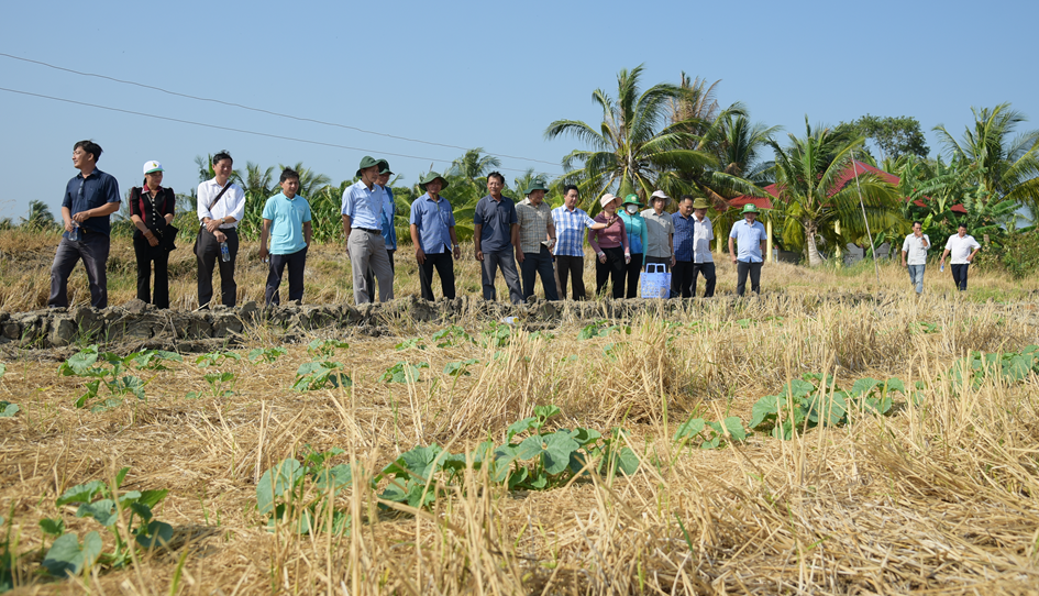 Lãnh đạo UBND huyện Vĩnh Thuận thăm mô hình Dưa lê tại ấp Bình Minh xã Vĩnh Bình Bắc