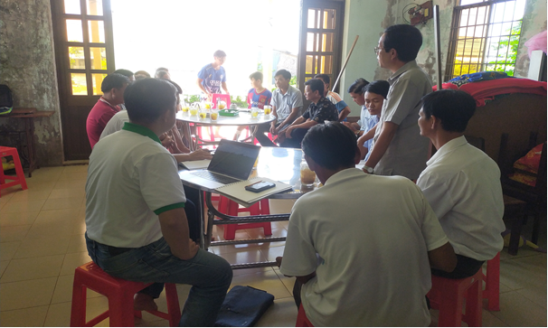 Quan cảnh buổi triển khai dự án tại HTX Trường Thịnh, ấp Vĩnh Trinh, xã Vĩnh Thuận